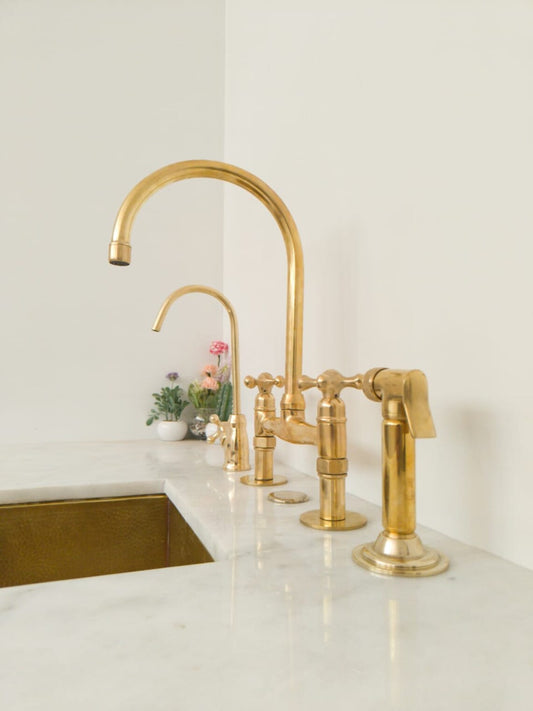 Unlacquered Solid Brass Bridge Faucet, Vintage Kitchen Sink FaucetRegular price From $342.00 USDRegular priceUnit price / per-