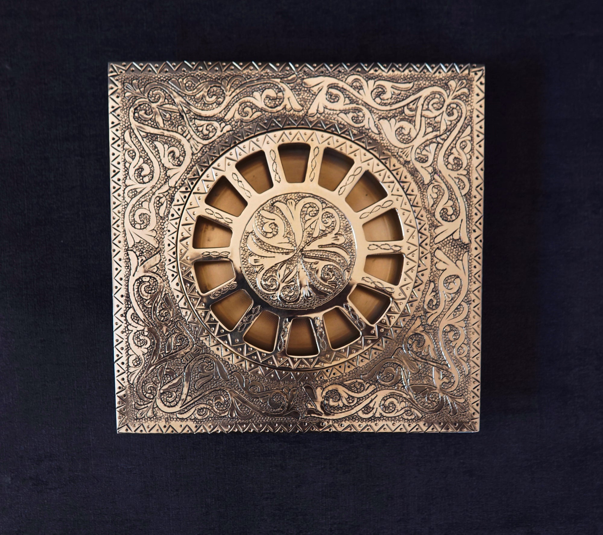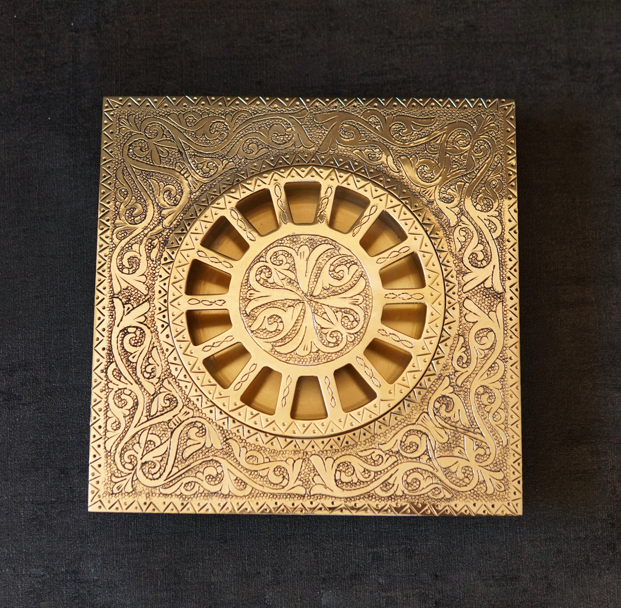 Engraved Brass Vessel Sink, Brass Bathroom Sink