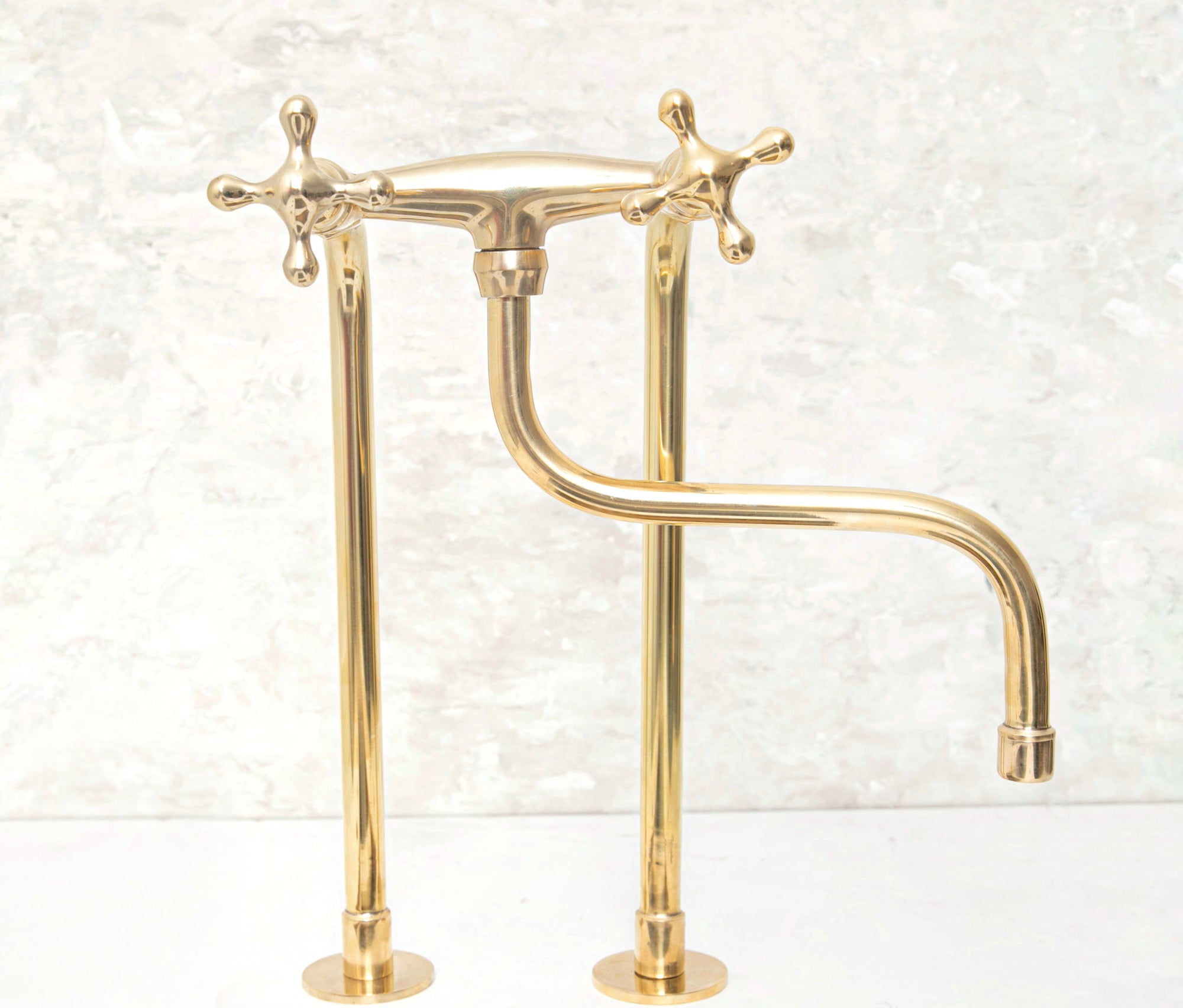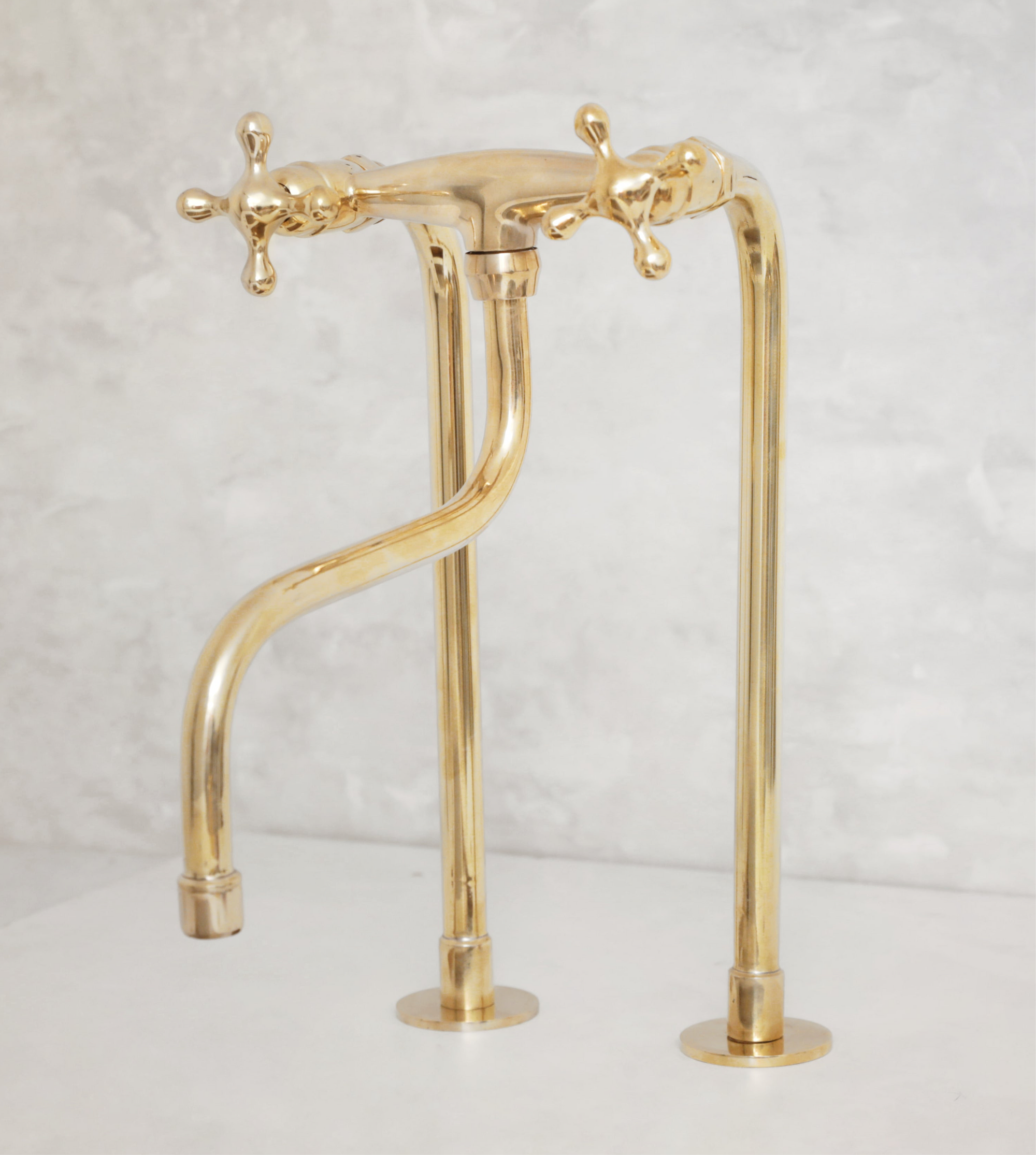 Snake Style Widespread 3 Holes Solid Unlacquered Brass Faucet