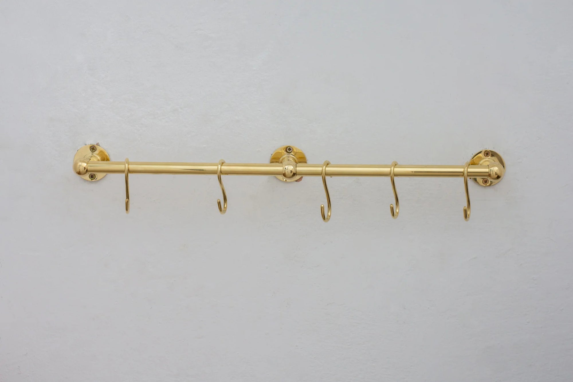 Solid Brass Pot Rail With Hooks, Unlacquered Brass Kitchen Pot Rack, Pot Hangers