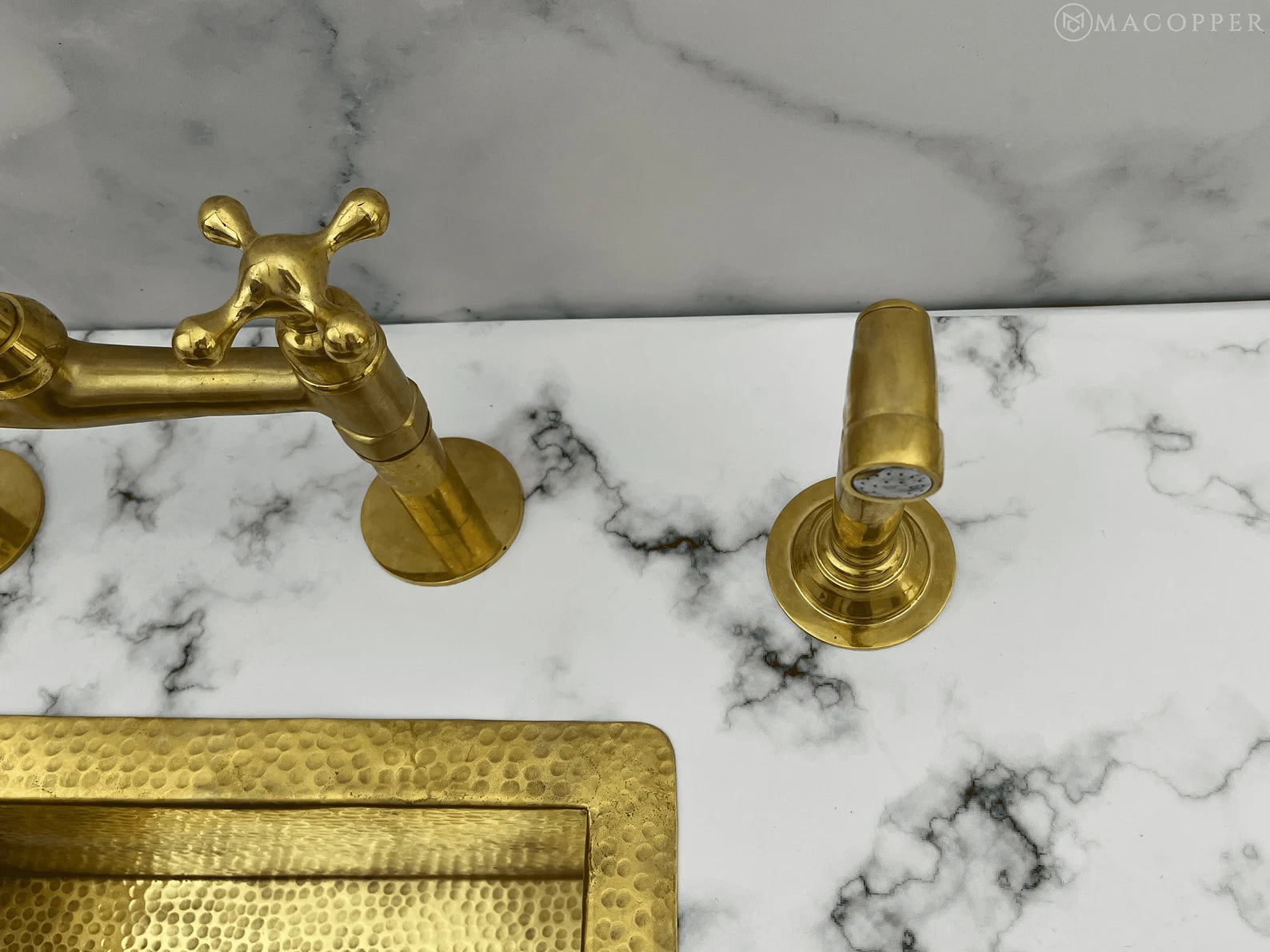 Explore our collection of premium brass and copper kitchen faucets, designed with timeless craftsmanship and modern functionality. From vintage-inspired brass and copper faucets to sleek, unlacquered finishes, each piece in our collection is handcrafted to bring a touch of elegance and durability to your kitchen.