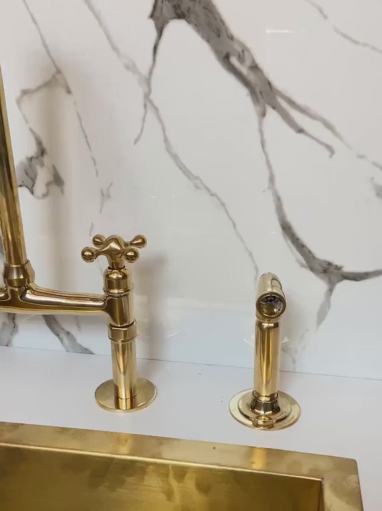 Unlacquered Solid Brass Bridge Faucet, Vintage Kitchen Sink Faucet